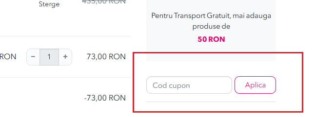 Verifica daca ai introdus corect codul, fara spatii sau caractere in plus. Asigura-te ca este inca valabil si ca indeplinesti conditiile specificate, cum ar fi valoarea minima a comenzii sau produsele eligibile.